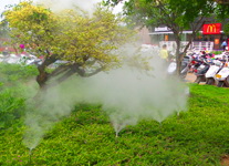 噴霧系統(tǒng)運用的案例含噴霧消毒、人造霧景觀、噴霧除臭、除塵等。